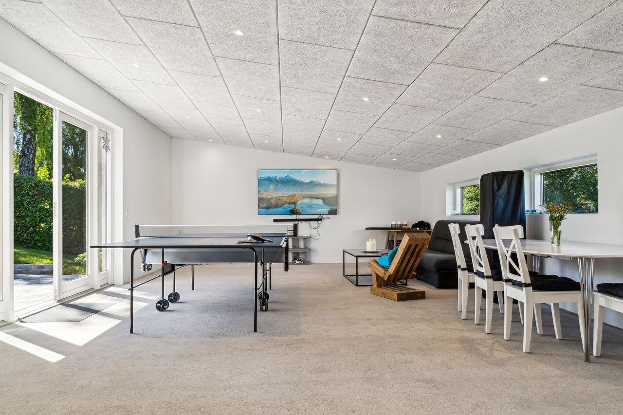 Villaen udfolder sig over to velindrettede plan med en særdeles anvendelig underetage, der sammen skaber rammen om et hjem fuld af liv og muligheder. Med tre gode værelser i stueplan er der plads til familien, mens de mange disponible rum i underetagen åbner op for kreativ udfoldelse eller ekstra opbevaringsplads.