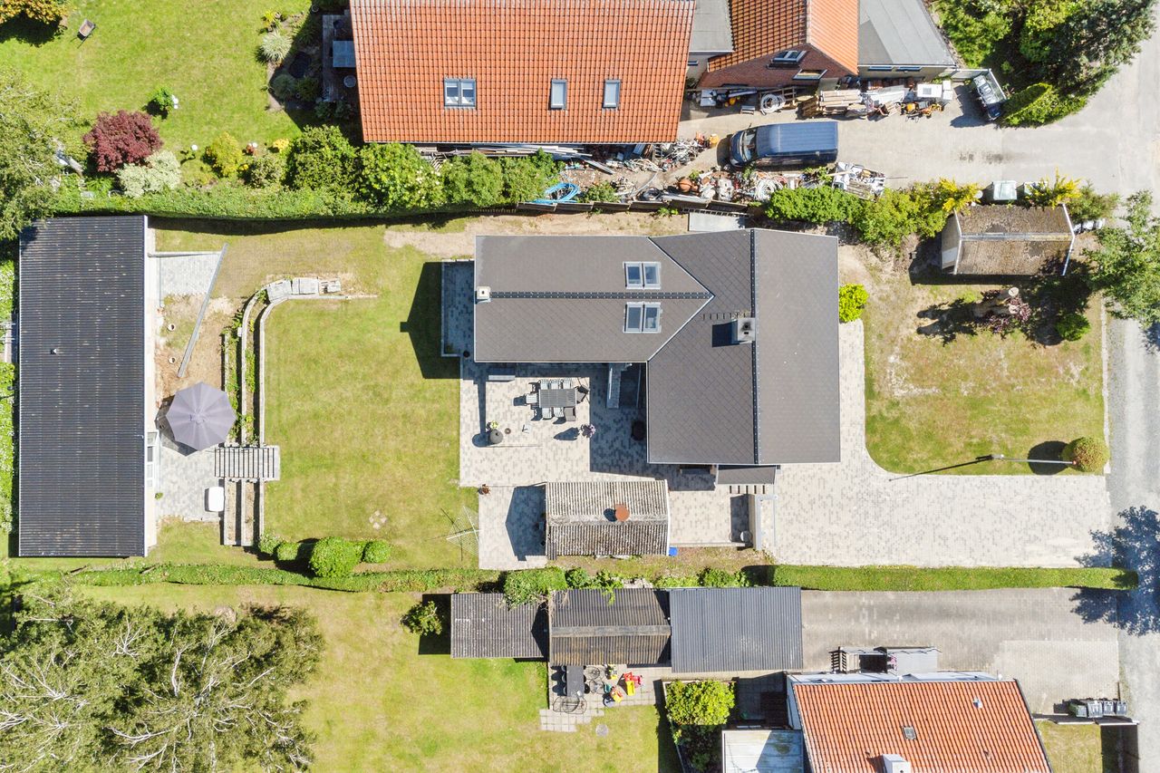 Til ejendommen hører også et rummeligt anneks på 106 kvm., som giver mulighed for at udleve drømmen om eget værksted, lager eller måske som hobbyrum. Annekset har lækkert bad/toilet, køkken og opvarmes med træpille ovn..