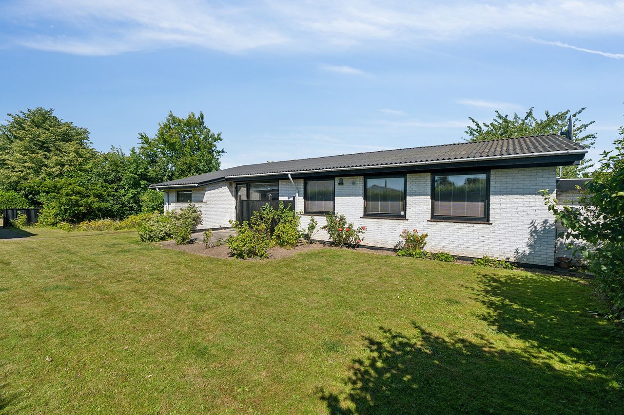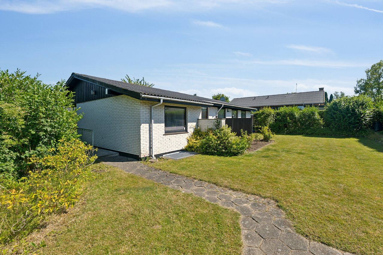Villaen toner frem med en nydelig facade. Inden døre er det især det rige lysindfald i stuen, som tiltrækker sig opmærksomheden. Gulvet understreger den fine fornemmelse, og tilstødende råder I over et udmærket køkken med plads til et mindre spisebord.