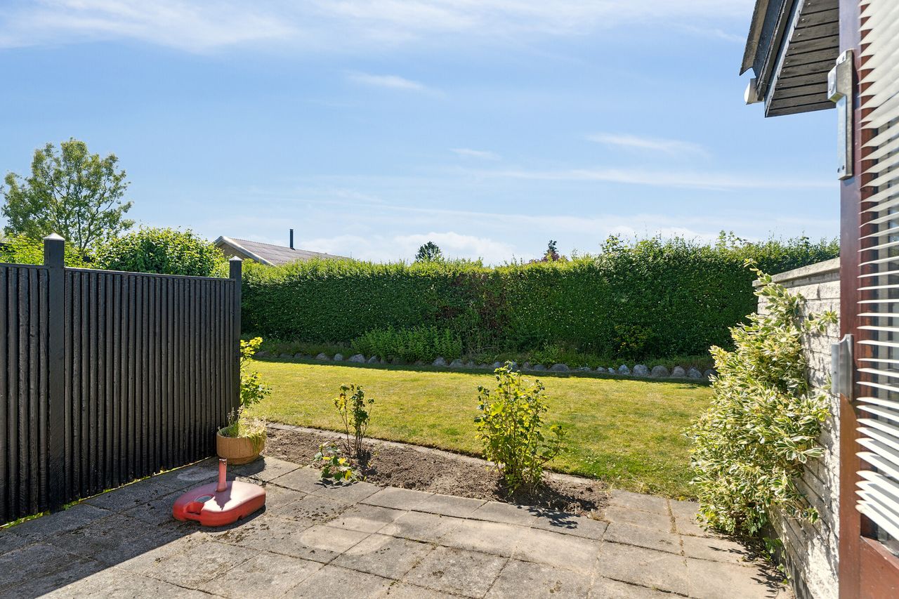 Haven er anlagt, så I får et fortrinligt uderum, der nærmest opleves som en forlængelse af villaen. Ikke desto mindre er haven let at passe, så der er god tid til at nyde de fine forhold. Solen kan nydes hele dagen og den vestvendte terrasse er det oplagte sted at tilbringe en del af udelivet.