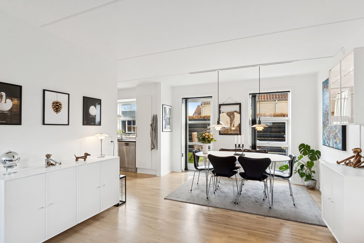 Det er i det åbne opholdsmiljø, at familien samles i hverdagen. Her tryller I varme retter frem i det nordiske, hvide køkken, mens børnene dækker spisebordet op til måltidet. Når I har slået mave, kan I rykke hen i den anden ende af stuen, hvor I helt sikkert har fået arrangeret sofaen, så der kan arrangeres filmhygge og afslapning.