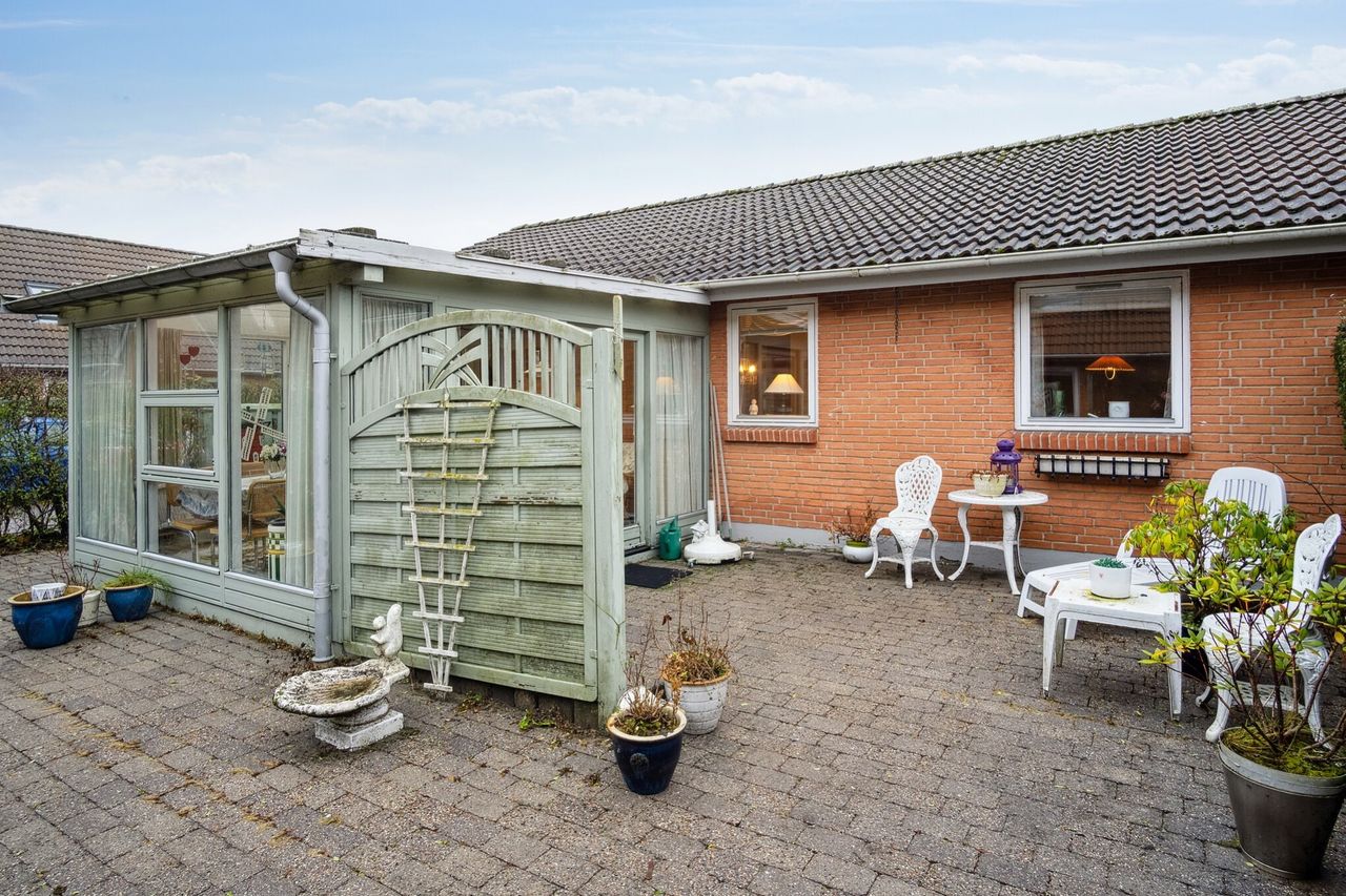 gårdhave og cykelskur. Boligen henvender sig både til seniorer og til den lille familie.
